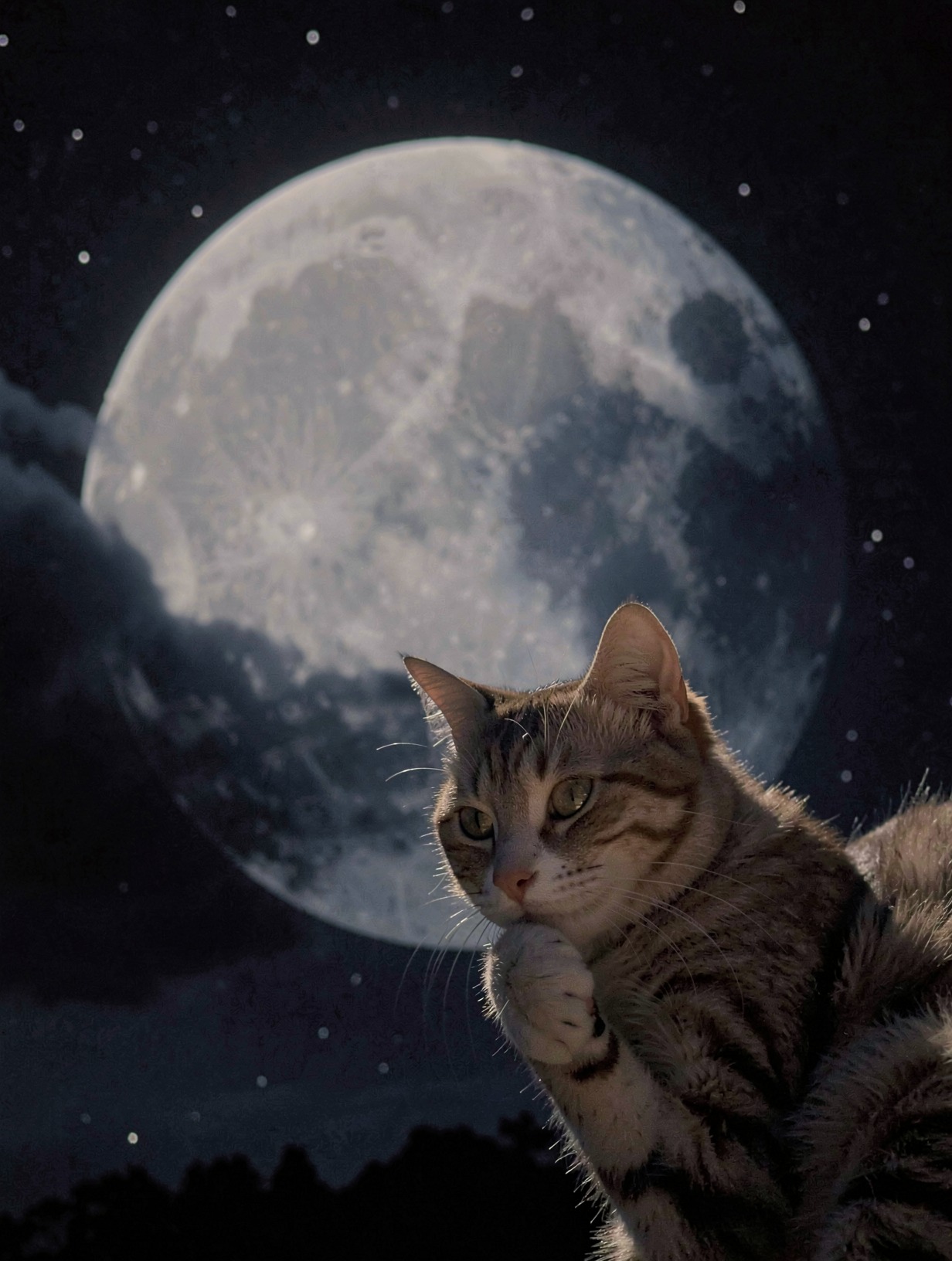 Cat Under Moon