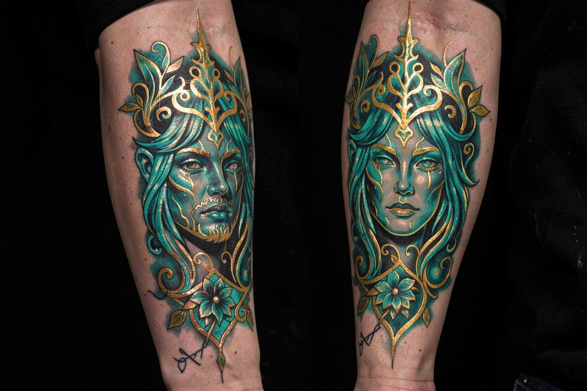 Glowing Teal And Gold Tattoos