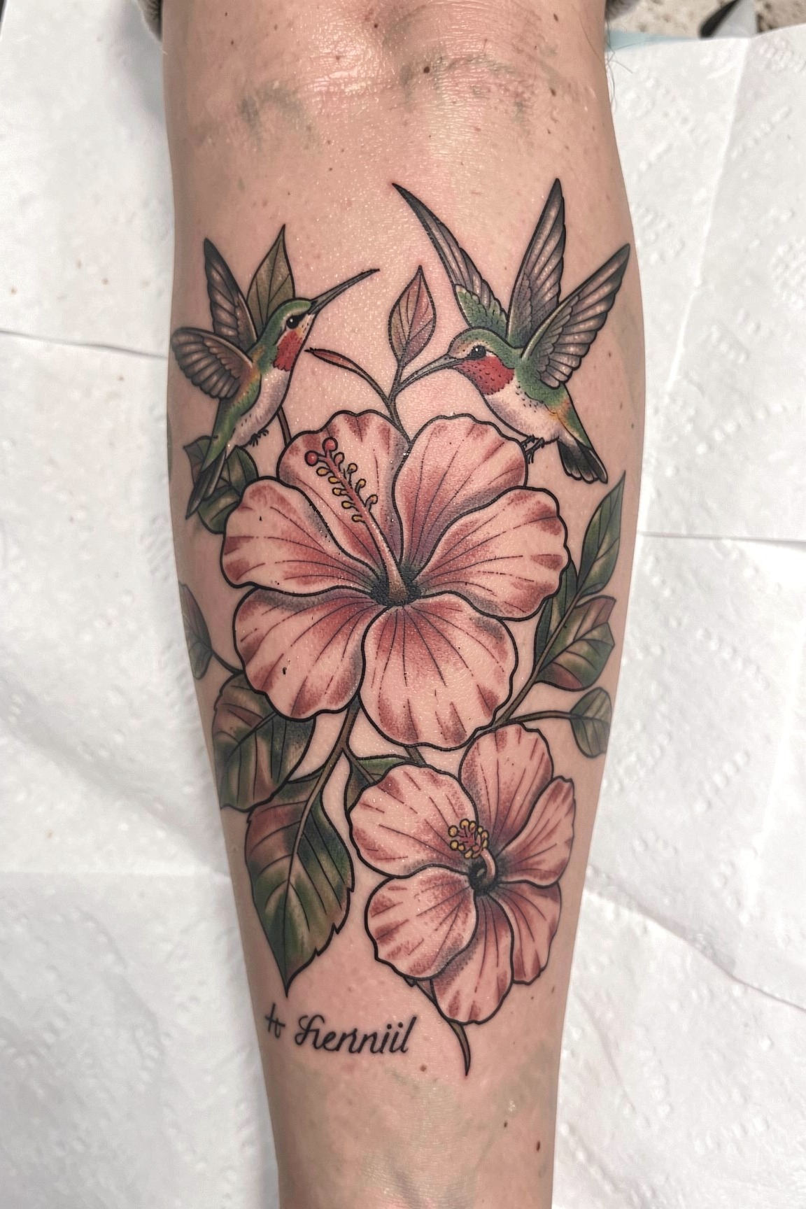 Hibiscus Flower And Hummingbird Tattoos