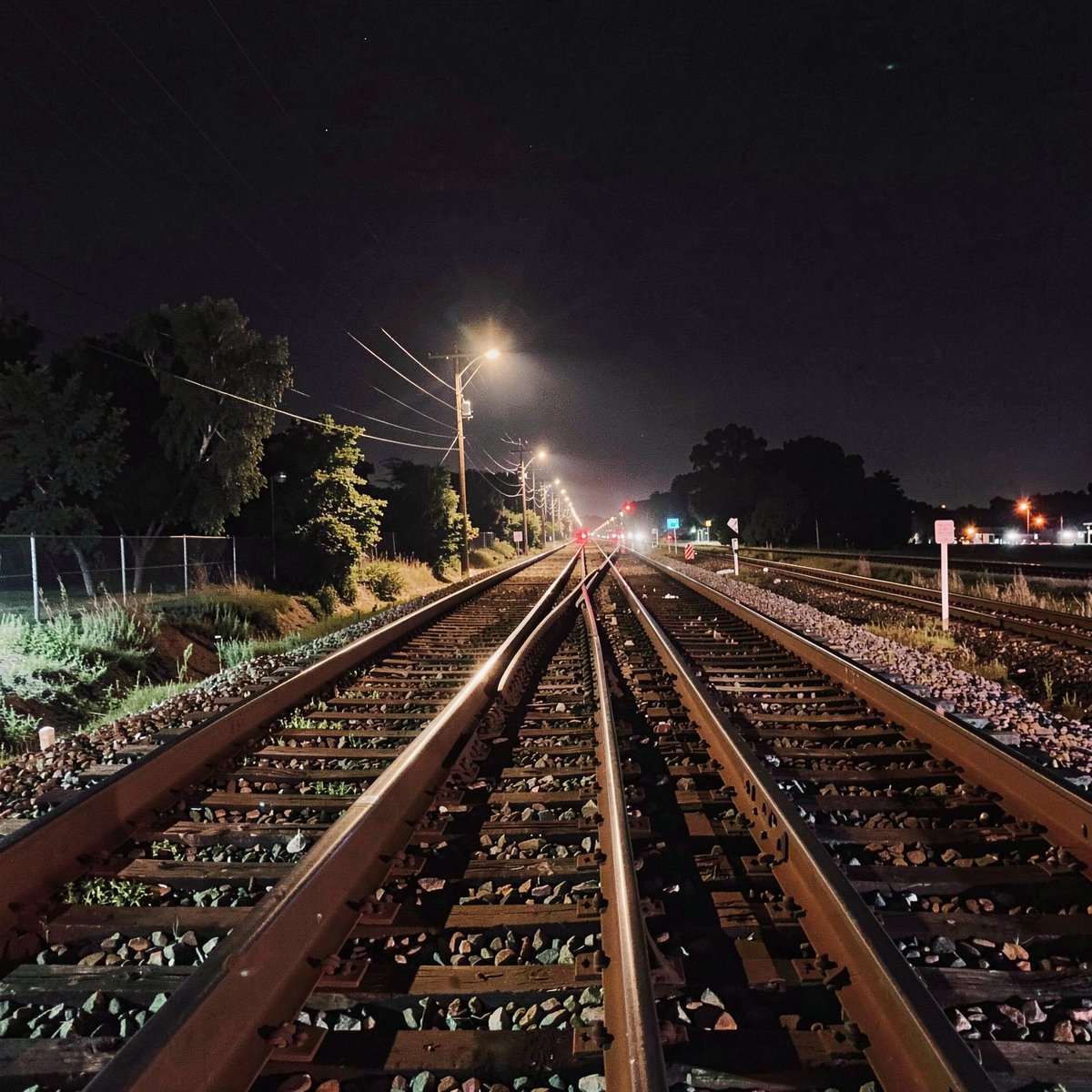 Railroad Tracks At Night